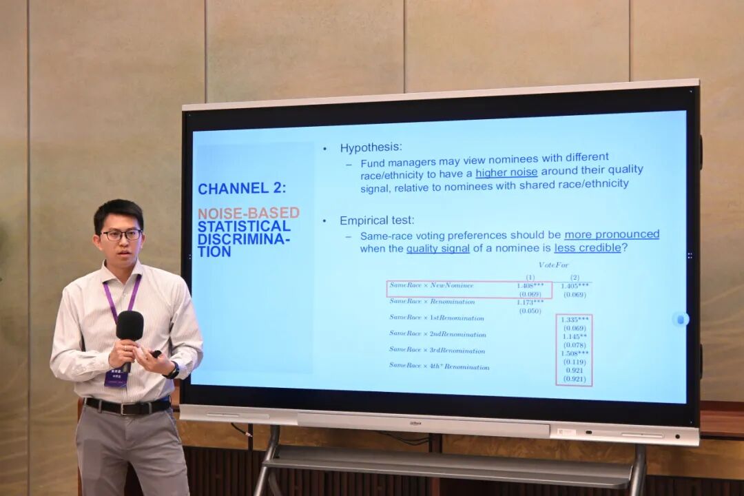 2025年5月10日,第六届中国应用经济学年会(2025)分论坛“信息技术变革与金融市场高质量发展”,在上海临港演艺中心临港贵宾厅成功举办。 论坛由上海财经大学滴水湖高级金融学院主办,聚焦信息技术革新对金融市场的深远影响,来自全国顶尖高校与研究机构的学者齐聚一堂,围绕人工智能、大数据、大语言模型等前沿技术与金融市场的交叉领域展开深入探讨。 本次分论坛由滴水湖高级金融学院副院长邱嘉平教授与人工智能金融方向学术主任、助理教授唐雨山共同主持。 论坛分为上下半场,集中呈现八篇来自全国重点高校的高水平研究成果,涵盖非语言信息预期管理、大语言模型与市场预测、创业投资与公共债务、众筹平台与创新实践、碳信用补贴等热点议题,展现了金融学与信息技术深度融合的多样探索与实践反思。 上海财经大学滴水湖高级金融学院助理教授叶乔治介绍合作论文《Who do You Vote for? Same-race Preference in Director Elections》。研究利用2005–2018年美国共同基金投票数据,发现基金经理在董事选举中展现显著的“同种族偏好”。这一偏好显著提高董事候选人连任概率,但对相关基金绩效影响有限,反映出公司治理结构多样性面临的隐性挑战。 对外经济贸易大学国际商学院副教授蔡欣妮在点评中肯定了该研究新颖的视角和扎实的数据基础,同时建议进一步识别偏好机制与公司治理之间的逻辑链条,并丰富因果识别策略,深入分析基金与公司在价值取向上的异质性。 中山大学高级金融研究院副院长张一林教授宣讲论文《GVC回购合约的形成与演化:基于双层委托代理的视角》。研究团队基于政府背景风险资本的运行机制,提出“双层委托代理模型”以解释GVC签订回购协议的偏好。研究指出,早期阶段回购有助于排除低质量企业,但也可能抑制高风险创新,从而减少社会整体福利。作者进而提出“精准容错”政策建议,建议按GVC识别力与发展阶段动态调整责任机制。 东北财经大学金融学院副院长熊海芳教授在点评中指出,该研究回应了“回购刚性兑付”与“耐心资本缺失”的制度困境,建议未来研究拓展至GVC与PVC的协同机制、回购条款对专利质量的影响及跨国制度适用性等议题,为我国创新治理提供现实参照。 清华大学五道口金融学院谭琳博士分享团队最新研究《Large Language Models and Return Prediction in China》。该研究通过使用多种大语言模型处理了2800万篇中文新闻,提取文本特征构建预测模型,实现对A股收益的高精度预测。实证结果表明,根据预测构建的多空组合能实现显著的年化收益。进一步分析发现大模型信号可以前瞻性预测盈余意外,但投资者响应呈现显著异质性。 上海财经大学金融学院副教授周航在点评中建议区分融券机制对散户交易策略的实际约束,呼吁进一步评估AI对信息公平性的影响,并提出可探索AI与监管科技(RegTech)的融合路径。 上海交通大学安泰经济与管理学院助理教授杨彪在《Uncertainty and Market Efficiency: An Information Choice Perspective》一文中提出“粘性信息成本假说”,将不确定性分为“内在性”与“时序性”两类,并构建信息成本指标。研究基于1990–2019年美股分析师预测数据,发现高信息成本组的预期误差带来更强的可交易机会。 首都经济贸易大学金融学院院长周开国教授在点评中指出,该研究为高不确定性背景下的信息传播与市场反应机制提供了全新解释路径,建议结合中国市场特色进一步拓展理论适用性,如延长样本期、提升经济含义表述、与政策引导挂钩(如支持“专精特新”企业)等。 南洋理工大学南洋商学院助理院长邓辛教授分享论文《From Pitch to Progress: The Interplay of Team Reputation and Governance in Crowdfunded Innovation》,比较了4014个ICO与747个Kickstarter项目,指出高声誉团队在无治理约束平台中更易融资,但创新质量与融入资金稳定性反而下降;相比之下,Kickstarter平台借助托管、审核、里程碑监管等制度设计,有效防止道德风险,提升项目交付率与长期表现,强调了制度设计对道德风险的重要约束。 山东大学经济学院副院长张群姿教授点评指出,该研究为众筹治理设计提供政策支撑,建议监管机构推动平台治理责任的制度化、标准化,提高众筹生态系统的稳健性。 上海财经大学金融学院讲师方明浩介绍合作研究《创业投资、地方公共债务与企业创新》。该研究通过分析2006–2019年2.5万家A股公司与3700个城市数据,揭示了“债务-基建-创投”协同机制,并提出专项债定向支持科创园、推动债创联动等政策建议。 广州大学经济与统计学院副院长马双教授认为该研究具有较强政策团队,建议进一步加强对银行信贷对照组的分析及专利质量指标刻画,以增强结果解释力与政策适用性。 上海财经大学金融学院副教授冯玉林汇报论文《Quantifying the Benefits of P-A-Y-D Insurance: Subsidy of Carbon Credit》。通过构建双期动态模型,研究测算了PAYD保险模式对碳减排的影响,发现该机制可使车辆年均行驶里程显著下降,进而增加每车碳信用,但保险公司利润下降。研究提出以碳市场收益补贴保险方,推动绿色出行政策落地的建议。 西南财经大学中国金融研究院教授曹伟认为研究模型构建严谨,建议可进一步引入更灵活的效用函数考虑行为差异与财政可持续性评估,提升研究的实用性与政策落地路径。 武汉大学经济与管理学院副院长李斌教授