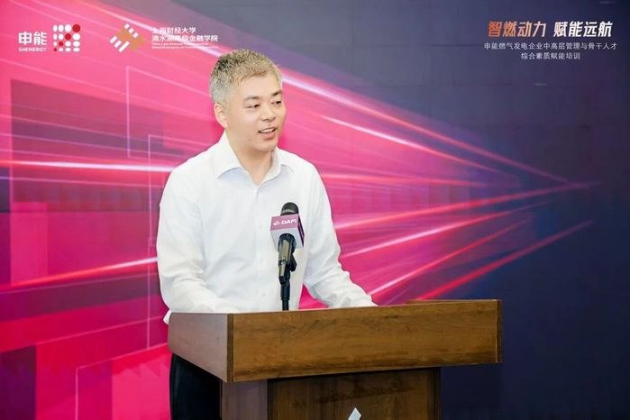 为加速迈向世界一流能源企业,锻造具备前瞻视野、敏锐洞察与战略思维的中高层管理及骨干人才队伍,2025年8月1日上午,申能燃气发电企业中高层管理与骨干人才综合素质赋能培训项目在上海财经大学滴水湖高级金融学院正式启动。申能股份有限公司党委委员、副总裁兼董事会秘书杨波,上海财经大学滴水湖高级金融学院院长姚洋教授、上海财经大学滴水湖高级金融学院骆玉鼎教授、高管教育中心主任王威老师出席本次开班仪式。来自申能股份旗下相关发电企业的 50 名中高层管理人员及业务骨干共同参加本次培训。