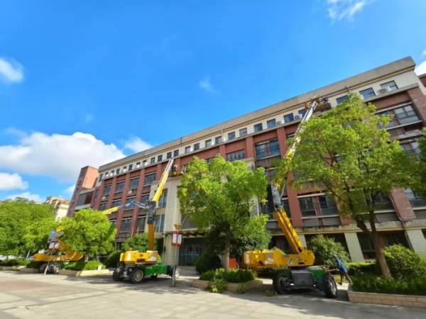 很多外资的撤出,最主要的原因是在中国市场竞争不下去了,比如卡特彼勒等。图为徐工直臂式高空作业平台,在进行学校宿舍整修 徐工官网
