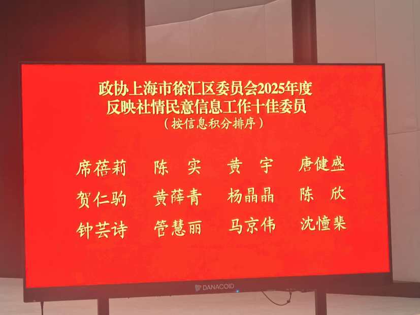 此次会议期间,陈欣教授荣获2025年度“反映社情民意信息十佳委员”称号,这是对其履职成效的高度认可。这是陈欣教授连续第三年获得该荣誉。