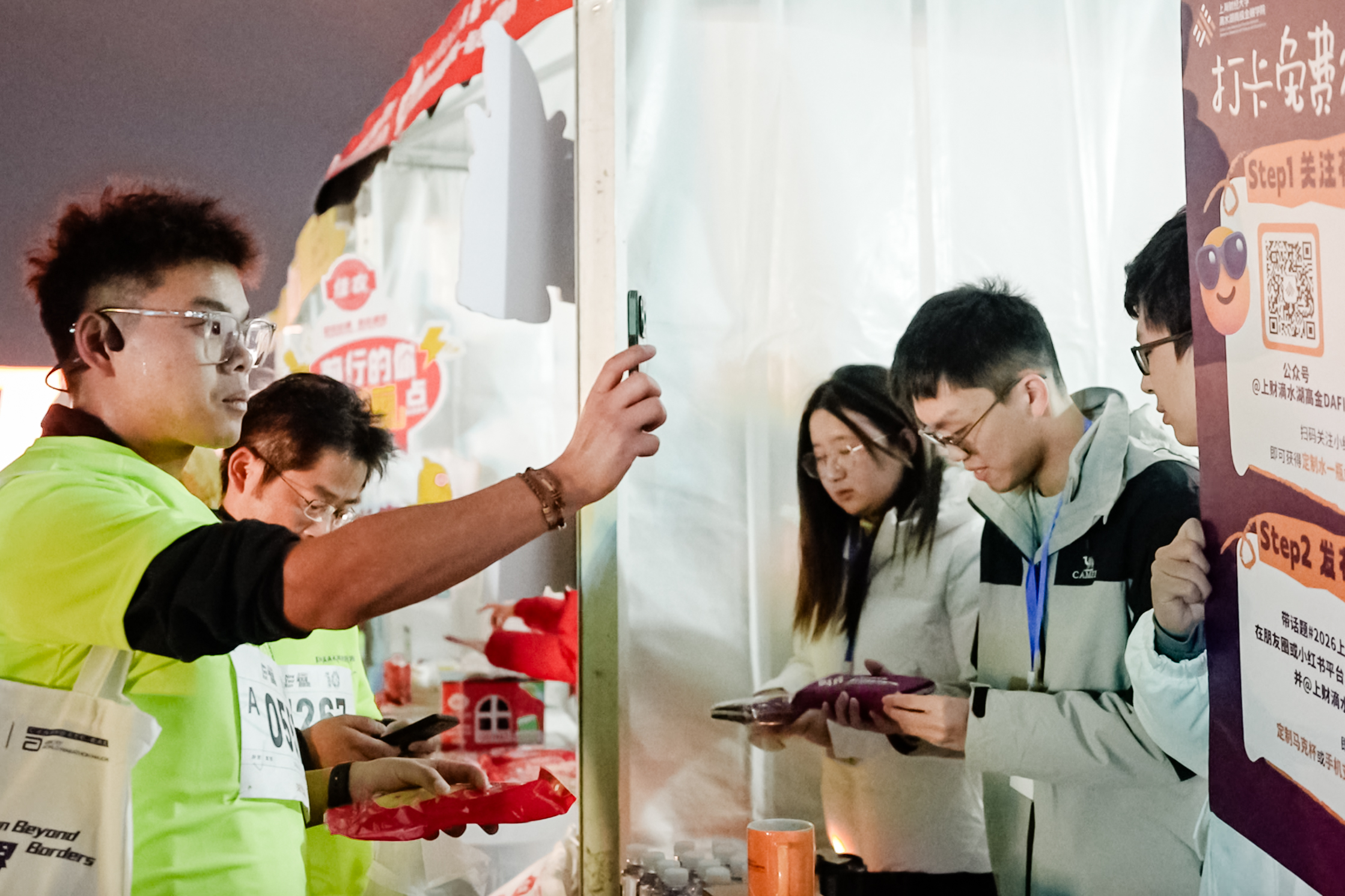 从冲线后的合影留念,到展台前的互动打卡,DAFI的参与,始终融入在赛事最热闹、最具活力的场景中。不少跑者在完赛后驻足参与互动,关注学院官方账号、领取新年好礼。不少市民第一次近距离了解这所年轻、开放、面向未来的金融学院。