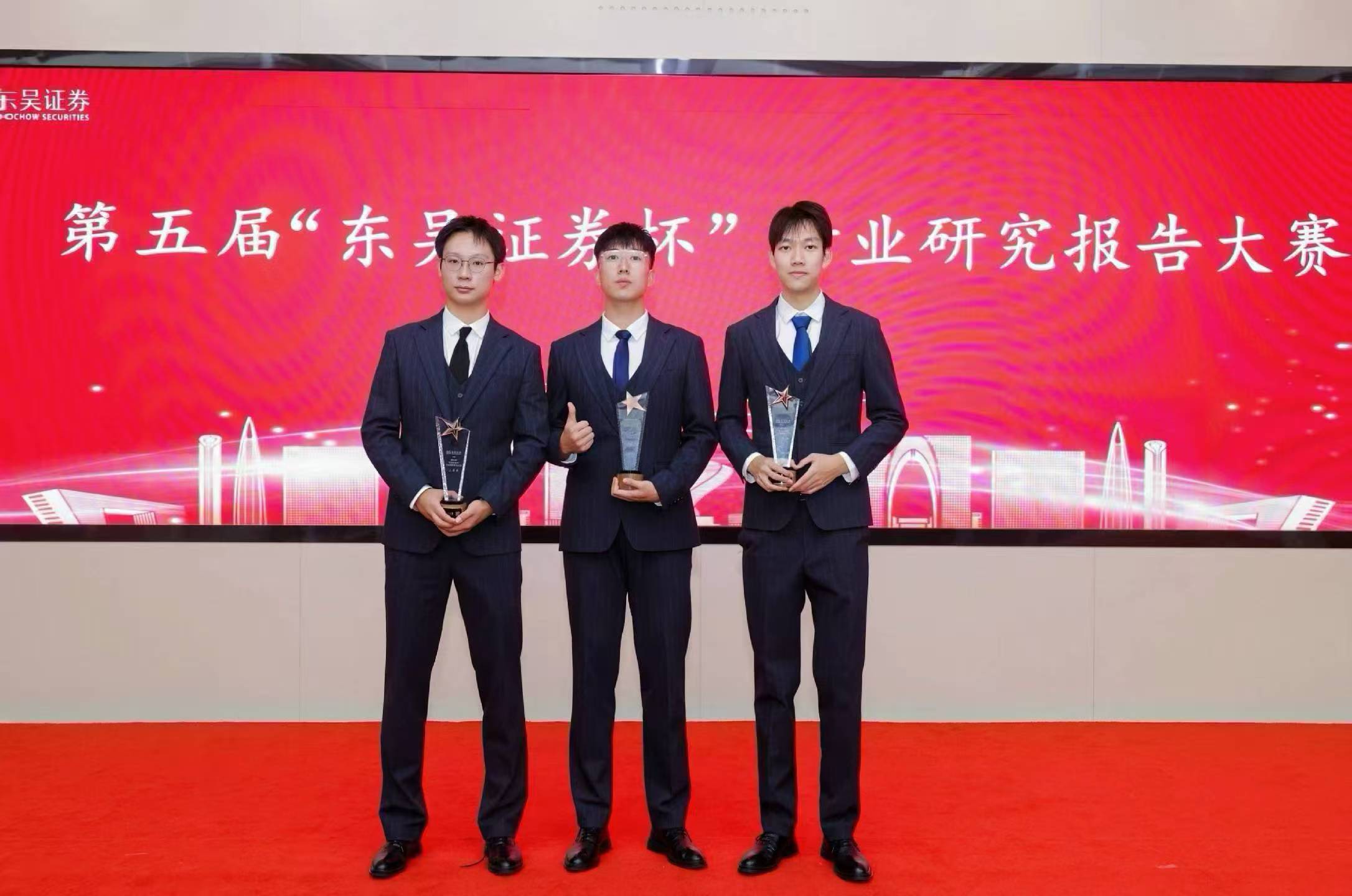 2025年12月19日,由东吴证券和券商中国联合主办,邀请中共苏州市委金融委员会办公室为指导单位,同花顺、郑钢基金协办的第五届“东吴证券杯”行业研究报告大赛决赛落下帷幕。此次大赛面向全国各大知名高校学生,经过初赛复赛与决赛的层层选拔,我院2025级国际金融工程方向金融硕士李家康、李鸿昊与复旦大学温子煜组成的团队,在决赛中表现优异,最终荣获三等奖。