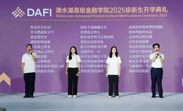 “Destiny Links Us to Lingang; New Finance New World”. On the morning of September 15, 2025, Dishui Lake Advanced Finance Institute, Shanghai University of Finance and Economics (“SUFE-DAFI” or the “Institute”) Matriculation Ceremony 2025 (the “Ceremony”) was grandly held in Lingang. Accompanied by the solemn and resounding notes of the National Anthem, new students of the Master of Finance, Financial MBA, and Doctor of Finance programs officially embarked on their new academic journey by the shores of Dishui Lake.