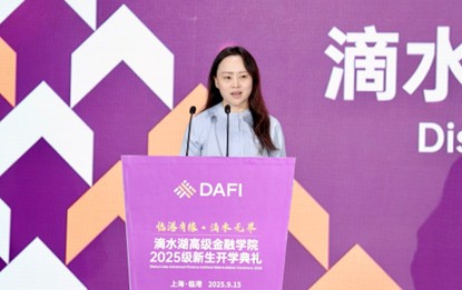 During the Ceremony, Professor SHAN Chenyu, representative of the faculty, spoke first. She expressed her hope to grow and progress alongside the students through mutual learning in future teaching, and encouraged the new cohort to root themselves in SUFE-DAFI, grow by Dishui Lake, and empower the era while contributing to China with the power of finance.