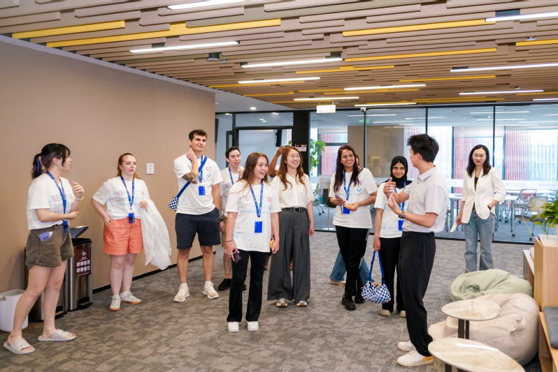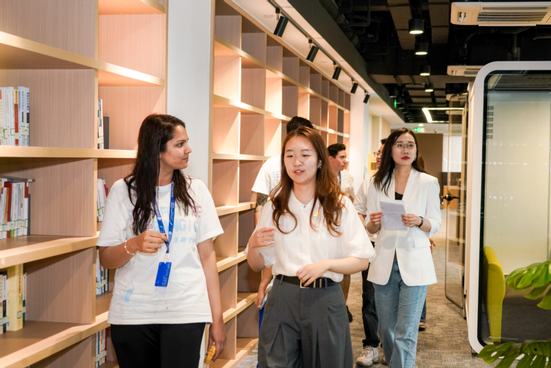 🧑🎓DAFI沈蓓蓓教授与王垠植、秦诺青、李正宇等多名金融硕士全程陪伴参访,带他们参观了海景图书馆、智能教室、沉浸式休息舱……一场跨文化的对话,在这里悄然发生。